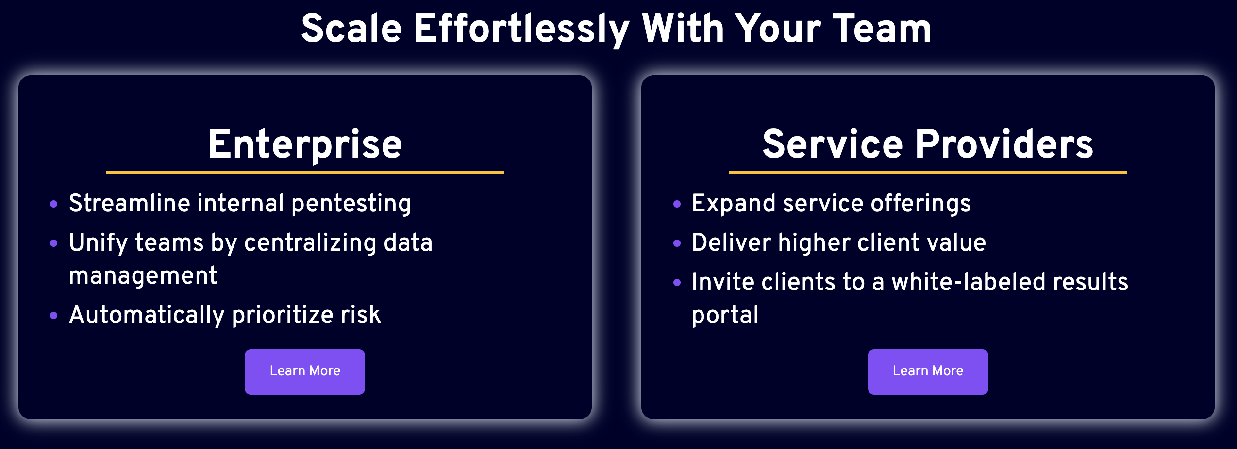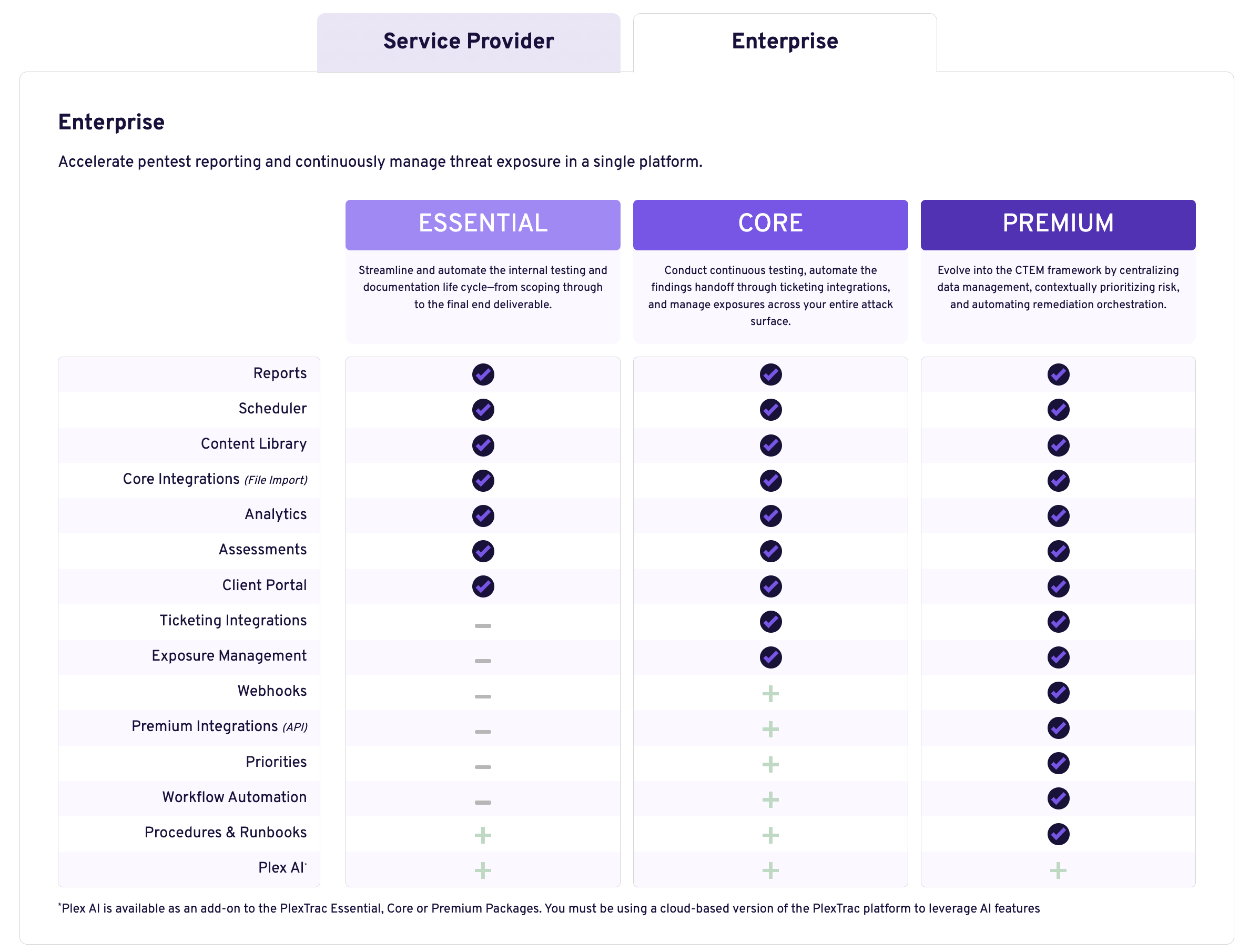 - Moved from user-based to value-based packaging and created a “Good / Better / Best” structure mapped to key use cases: Pentest Reporting, Vulnerability Management, and CTEM